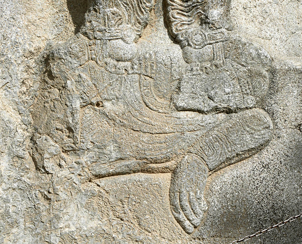 Detalhe de relevo Sassânida em Naq i Rostan, mostrando o imperador Juliano morto (foto: Philippe Chavin, CC BY-SA 3.0)